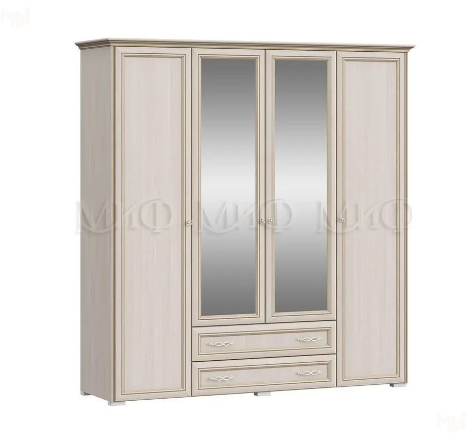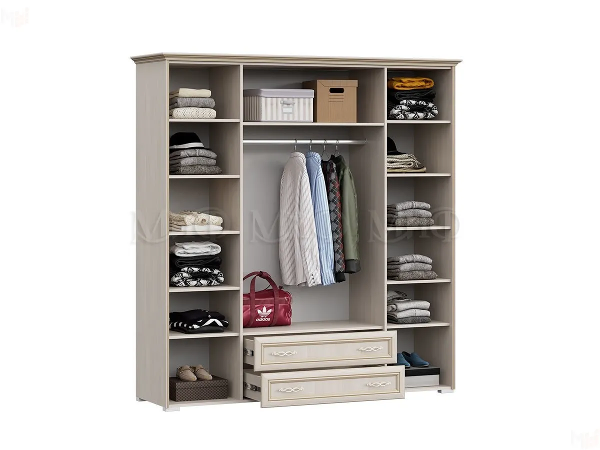 Наполнение шкафа - по бокам расположены полки для белья, в средней части отделение для верхней одежды. -