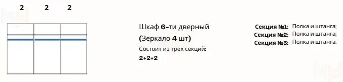 Шкаф Патрисия 6-дверный (2+2+2) с зеркалом караваджо глянец