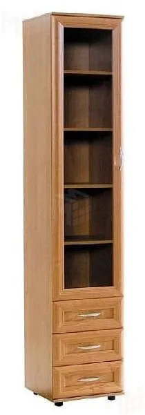 Шкаф для книг № 112 имеет небольшую ширину, имеет 3 выдвижных ящика и полки за стеклянной дверью. Это отличное и компактное решение для вашей квартиры.