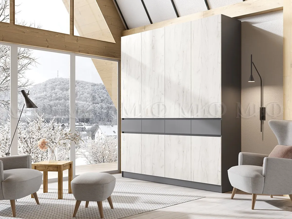 Шкаф Роджина 4-х створчатый (графит/крафт белый)