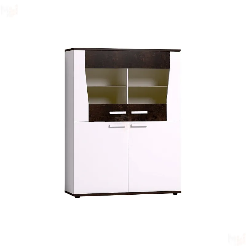 Невысокий Норвуд 22 Шкаф-сервант состоит из двух частей: верхняя - витрина и нижняя- тумба за глухими фасадами. Фигурный фасад верхней витрины эффектно совмещает в себе тонированное стекло и контрастную декоративную вставку. Верхняя планка закреплена и не открывается вместе с фасадами. На стеклянных полках толщиной 6 мм можно разместить чайные сервизы, а Норвуд 21 Дополнительный модуль для Норвуд 22 будет подчеркивать всю красоту вашей посуды. Модуль Норвуд 21 докупается отдельно на ваше усмотрение.