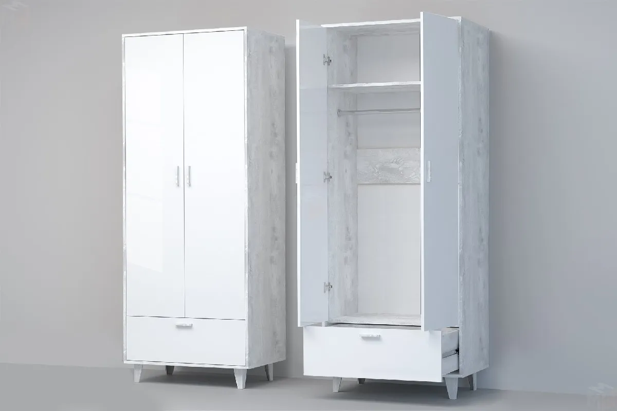 Шкаф ШК-1 НГ Эго Бетон Светлый/Белый Глянец