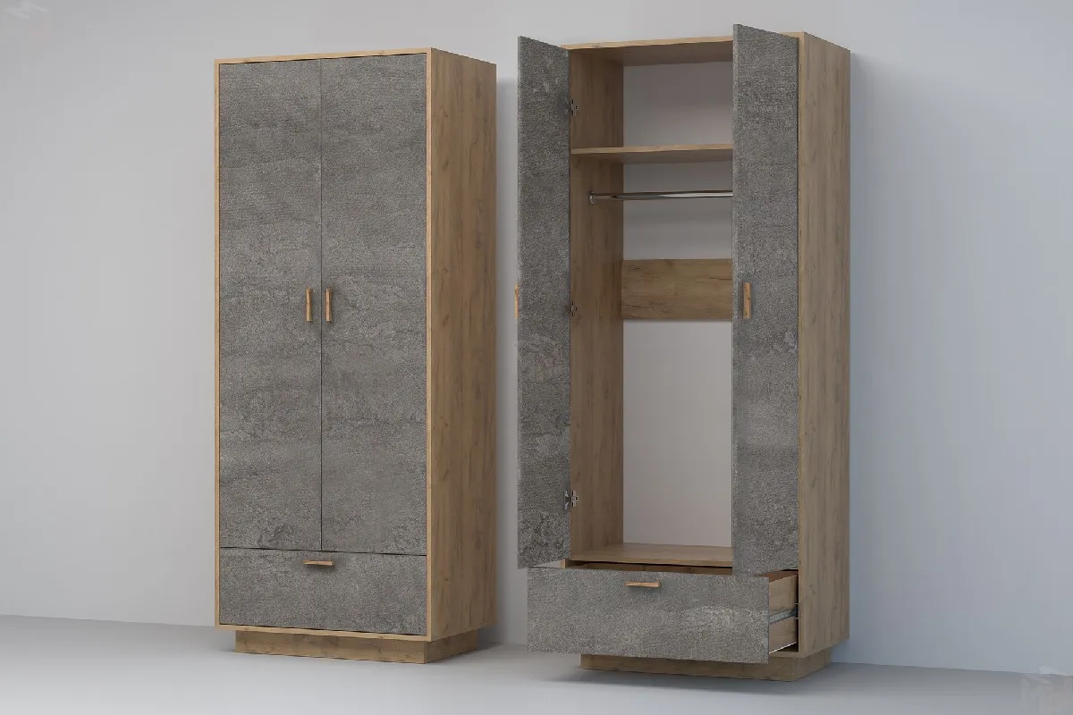 Шкаф ШК-1 ПД Эго Дуб Крафт Золотой/Камень Темный