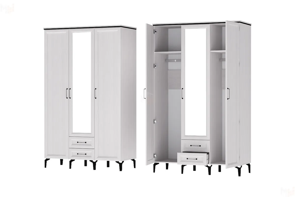 Шкаф трёхстворчатый с зеркалом идеально впишется в современный дизайн комнаты. Наличие трёх дверей даёт возможность удобного и быстрого доступа к предметам гардероба в любой секции.