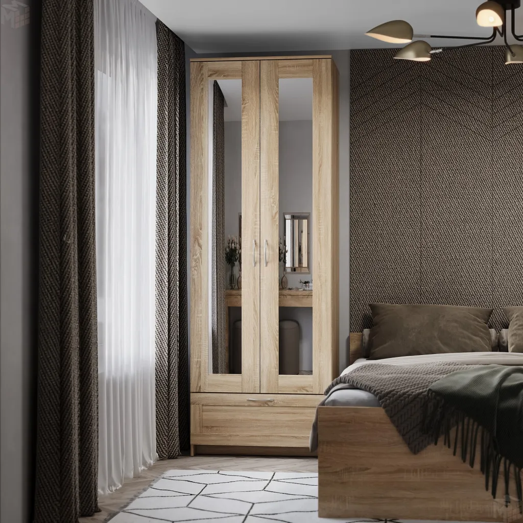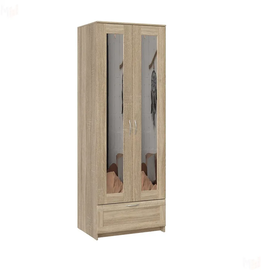 Шкаф Сириус 2 двери 1 ящик с зеркалами, сонома (высота 220 см)
