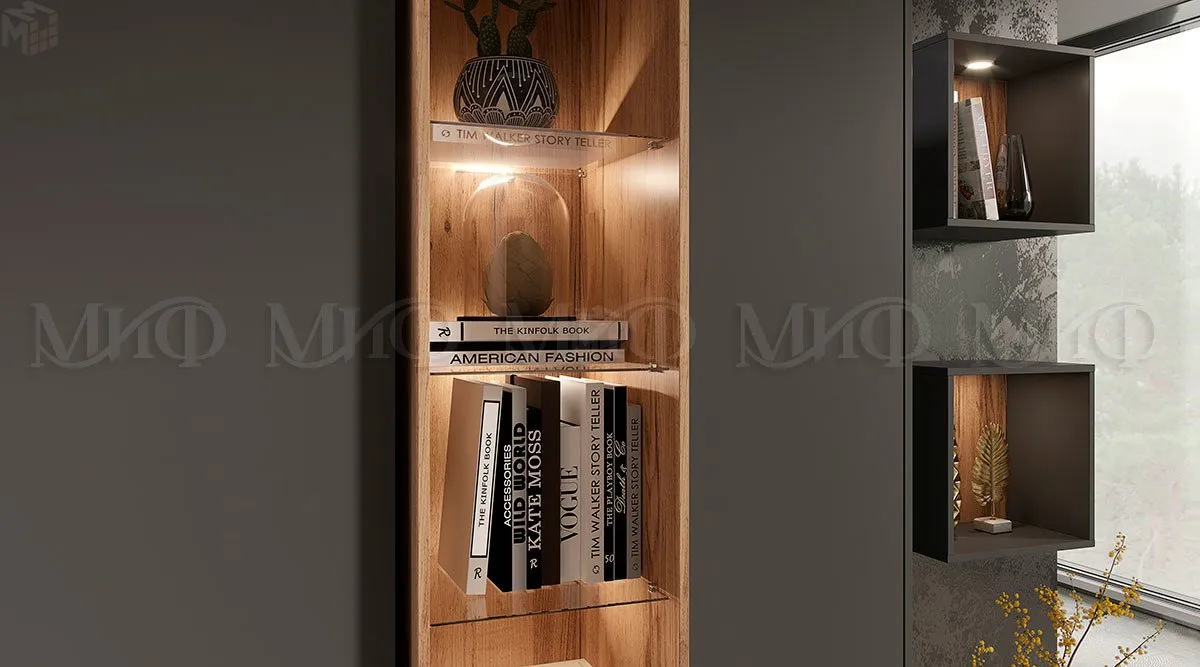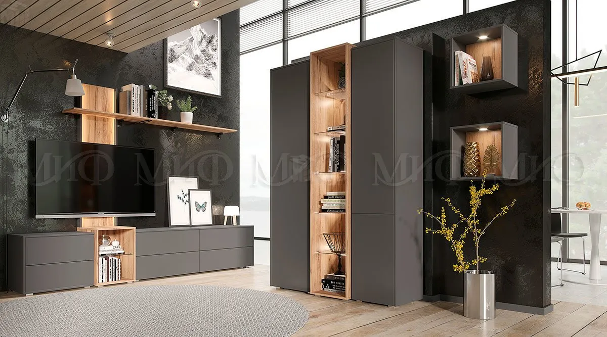 Шкаф Сплит является частью модульной системы мебели для гостиной.
