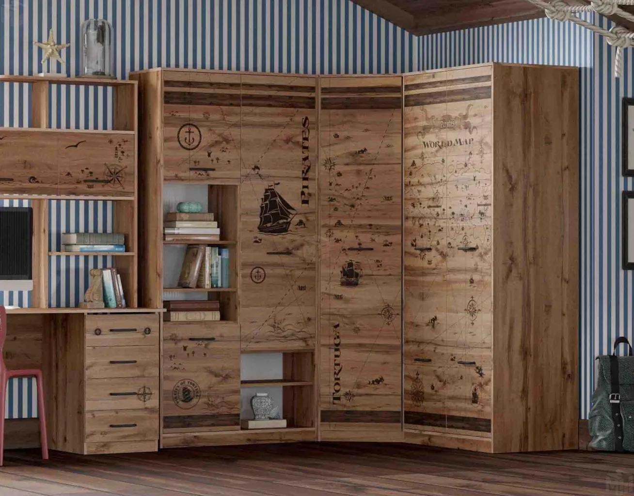 При оформлении детской на первый план выходит рациональное использование полезного пространства, ведь здесь ребенок не только отдыхает, но и играет, делает уроки, занимается творчеством и спортом. Наши дизайнеры при создании коллекций продумывают каждую деталь, опираясь на актуальные тенденции. Шкаф с тремя дверями «Фрегат» — один из примеров идеального сочетания практичности, оригинальности и долговечности. Цветовое исполнение подходит сразу для нескольких стилей, а габариты — для комнат разной площади. Мебель для детской создается из безопасных материалов с отличной износостойкостью.