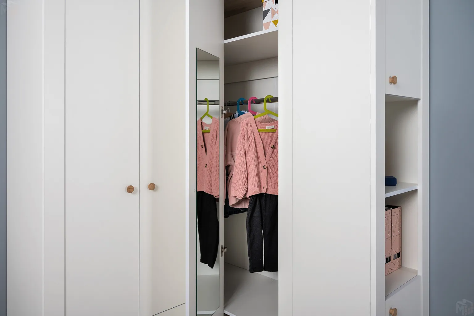 Шкаф угловой 13.229 Джастин хорошее решение для детской комнаты. Не займёт много места, но при этом вместит много вещей. -