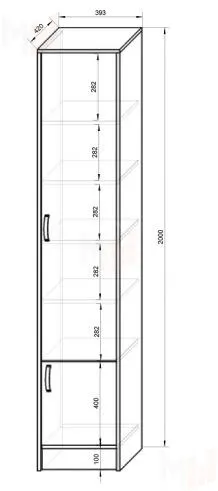 Шкаф однодверный узкий с наполнением, состоящим из полок.