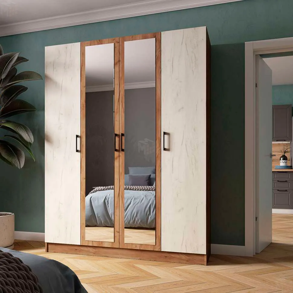 Корпус шкафа выполнен из ЛДСП Крафт золотой, фасады ЛДСП Крафт белый.
