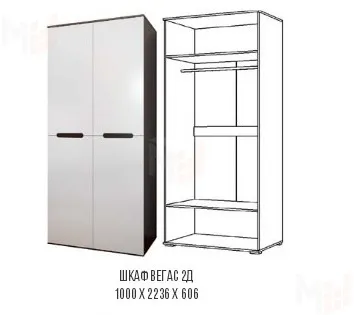 Наполнение шкафа - штанга для верхней одежды, верхняя и нижняя полки.