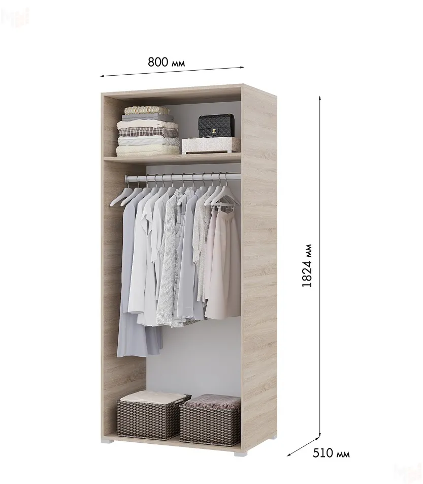ширина 800 мм, глубина 510 мм, высота 1824 мм