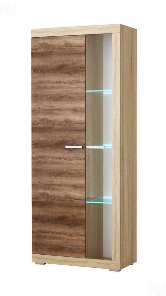 Шкаф-витрина ШВС-800 "Соната" 2-створчатый со стеклополками. Стеклостворка, нижняя и верхняя части шкафа обрамлёны профилем MDF. Опционально возможна установка светодиодной подсветки для стеклополок.