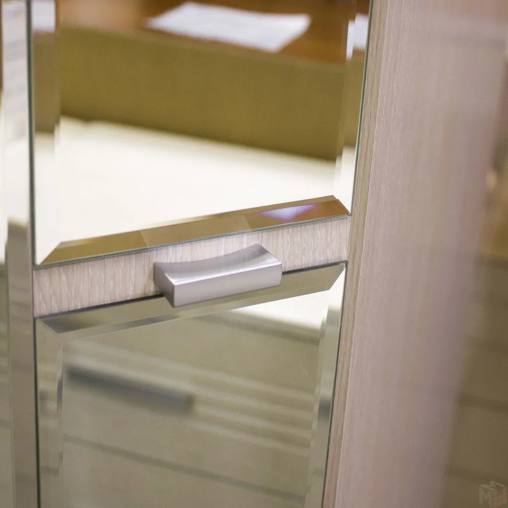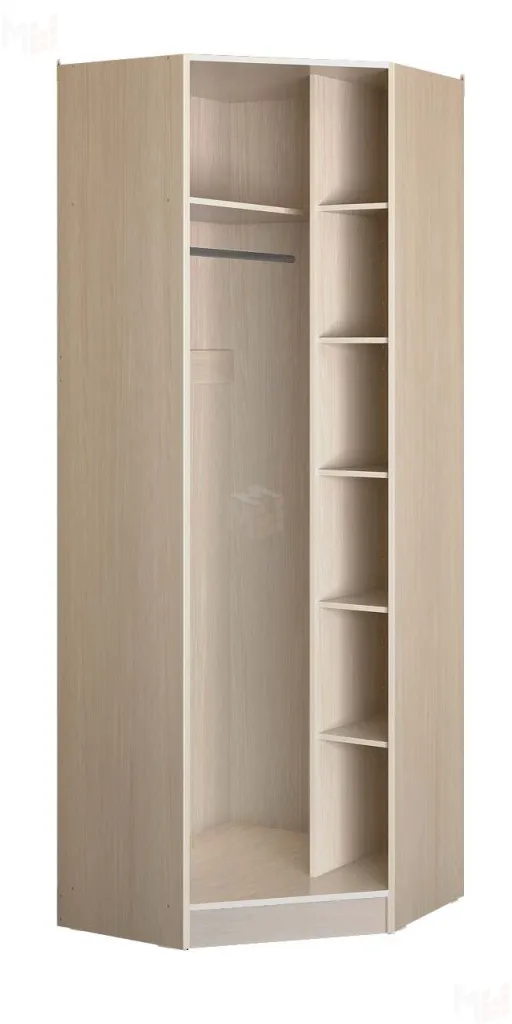 В шкафу установлена одна дверь, по всей поверхности которой закреплено зеркало. В шкафу много полезного места для хранения - множество полок, где можно положить вещи. Плюс есть секция для хранения верхней одежды, в нижней части шкафа отлично разместится обувь.