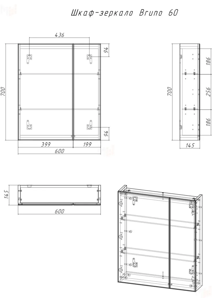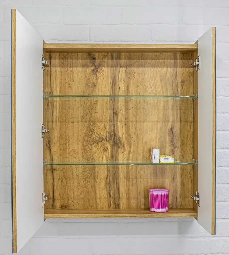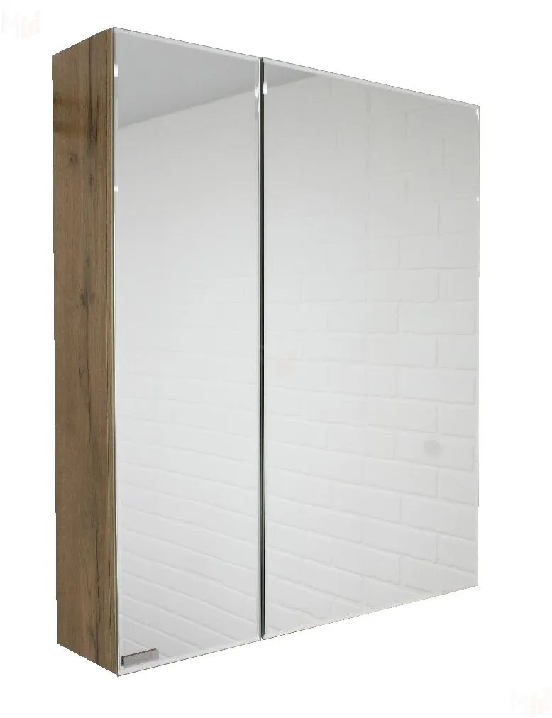 Шкаф-зеркало Bruno 60 левый/правый Домино. Внутри шкафчика - две стеклянные полки.