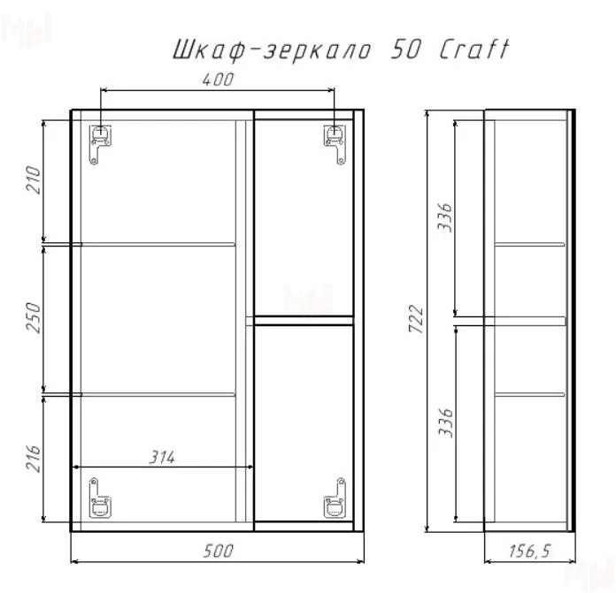 Шкаф-зеркало Craft 50 левый/правый Домино.