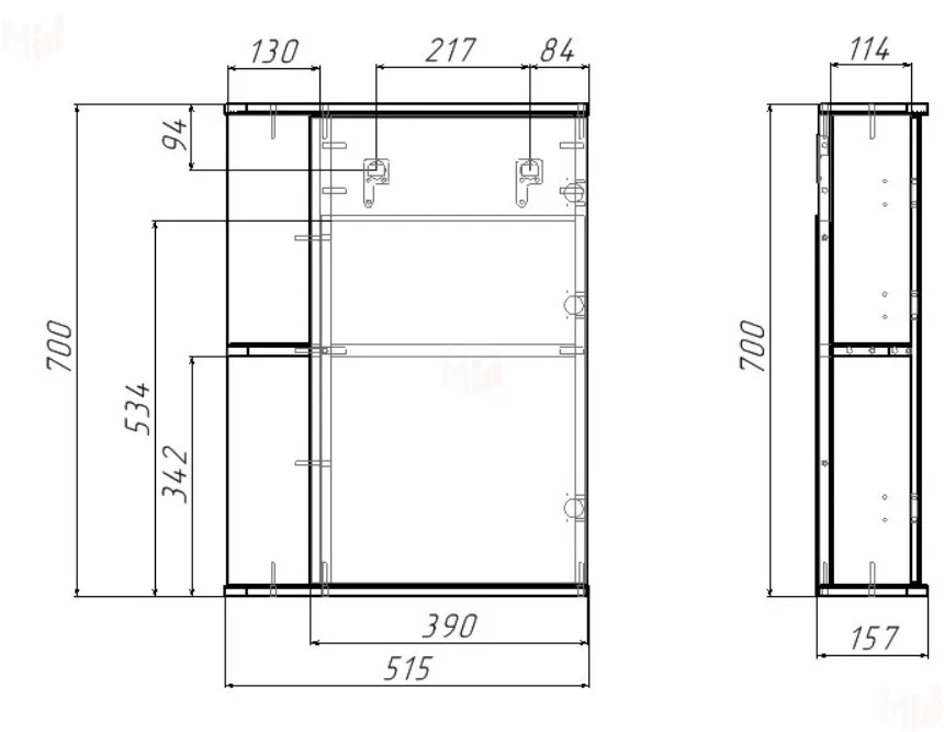Материал корпуса: ЛДСП, МДФ, пленка ПВХ, зеркало.