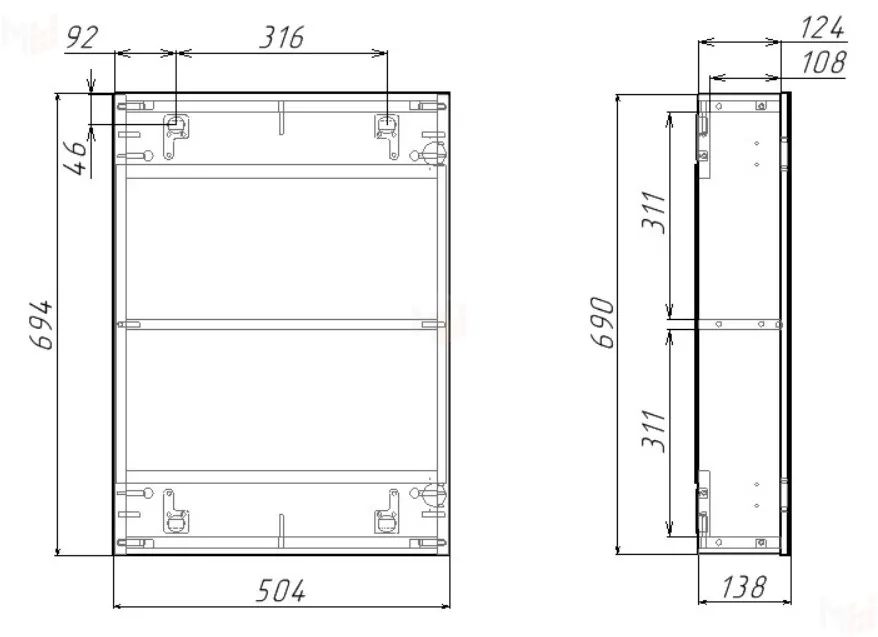 Шкаф-зеркало Норма 50 с одной дверцей Айсберг.