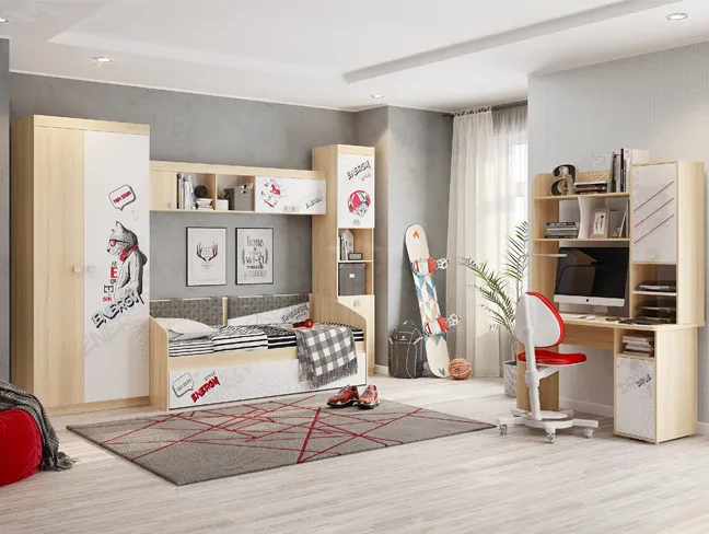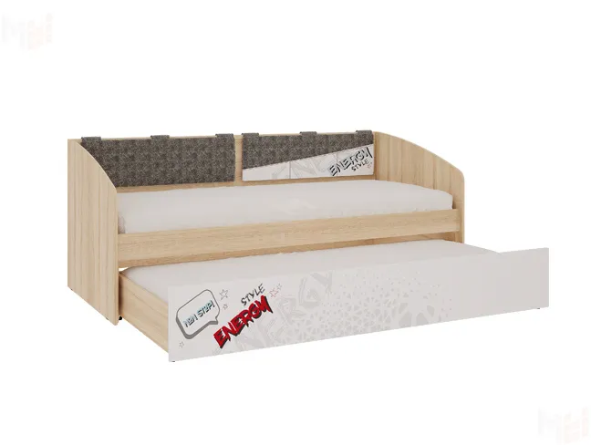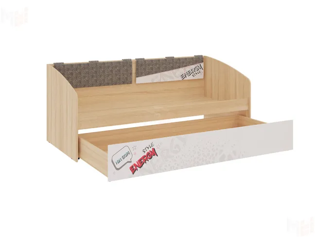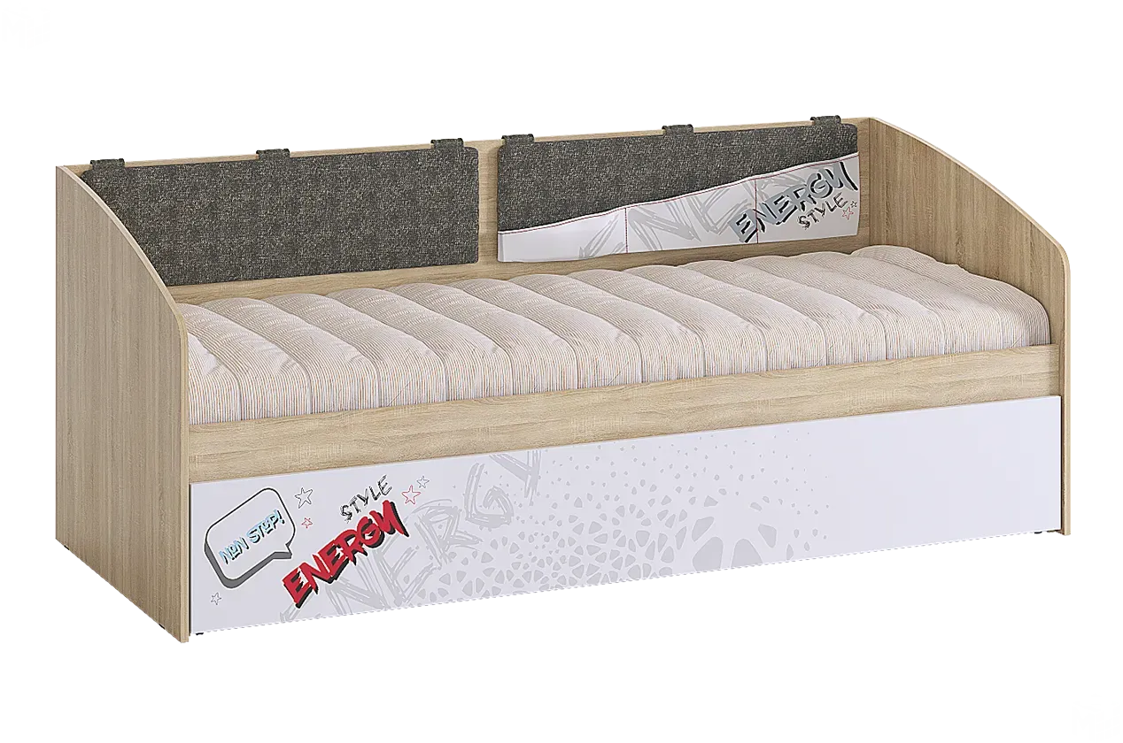 Дополнительное удобное спальное место или большой выдвижной ящик для хранения постельного белья и игрушек, на выбор, решать вам. Стильный принтерный рисунок на фасаде, и карманах. Чехлы подушек съемные, что позволит обеспечить чистоту и порядок. Детская мебель Энерджи - стильная, современная, которая понравится каждому ребенку. Рисунок устойчив к истиранию и ультрафиолету.
