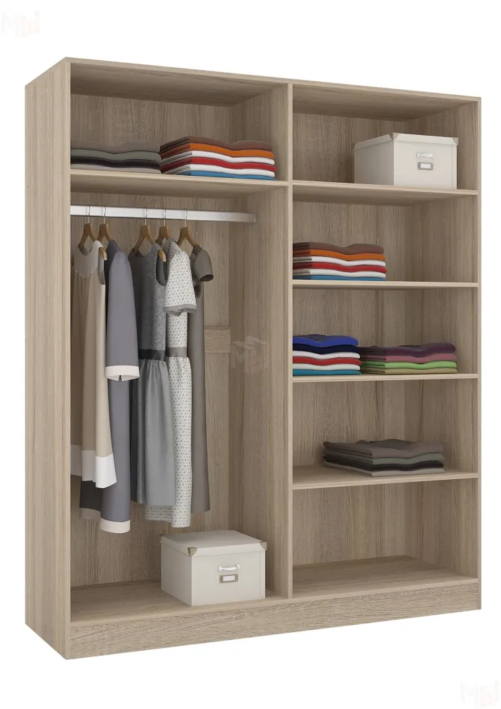 4. Шкаф 4-створчатый Леси (сонома/белый) - 1 шт. Ширина 1600 мм, глубина 466 мм, высота 1900 мм. Наполнение шкафа - с одной стороны полки для белья, с другой стороны штанга для вешалок. -