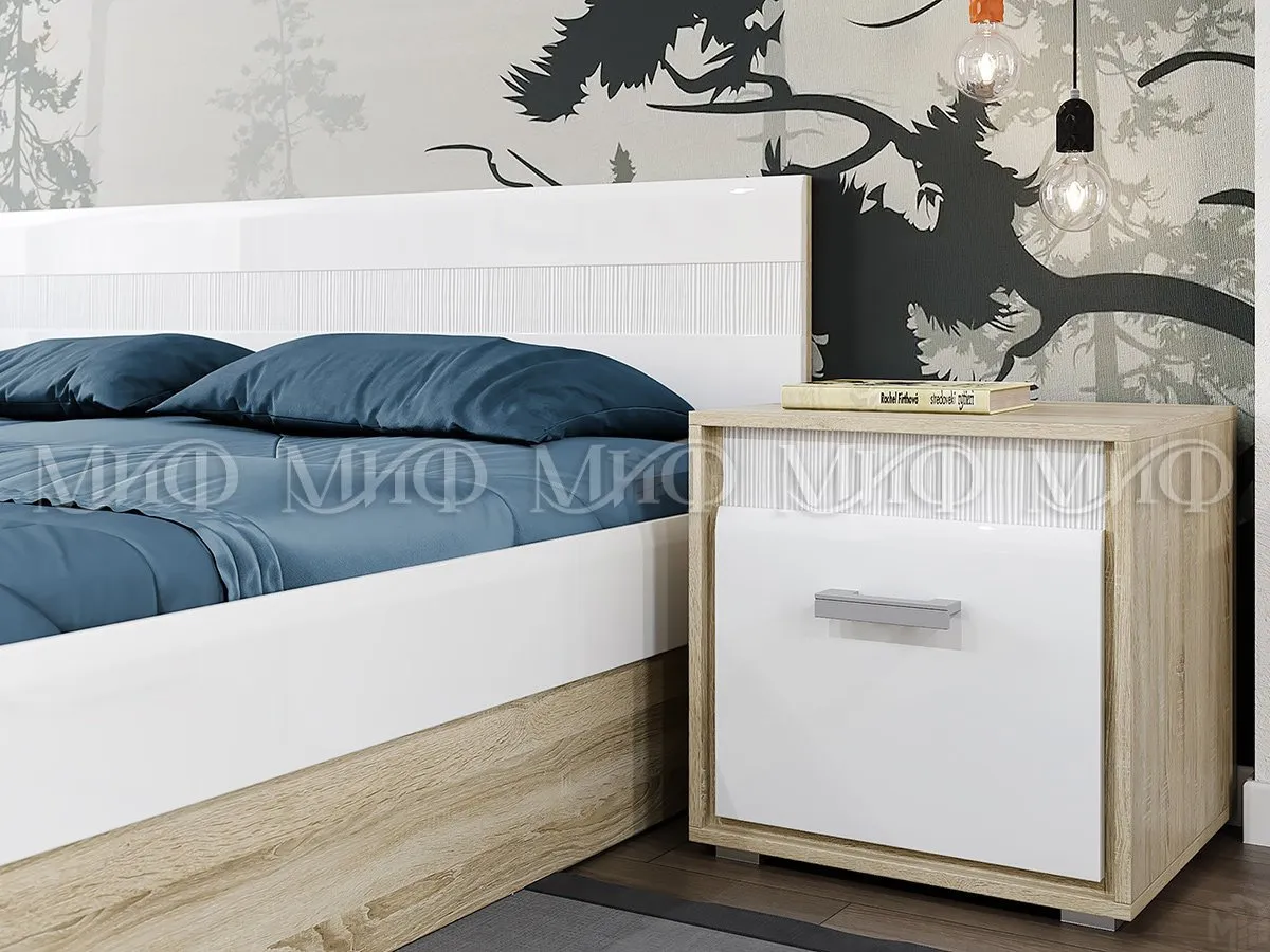 Каркас мебели выполнен из ЛДСП дуб сонома, фасады МДФ белый глянец. -