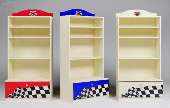 Стеллаж гармонично впишется в интерьер детской и прекрасно сочетается с кроватями в виде машинок.