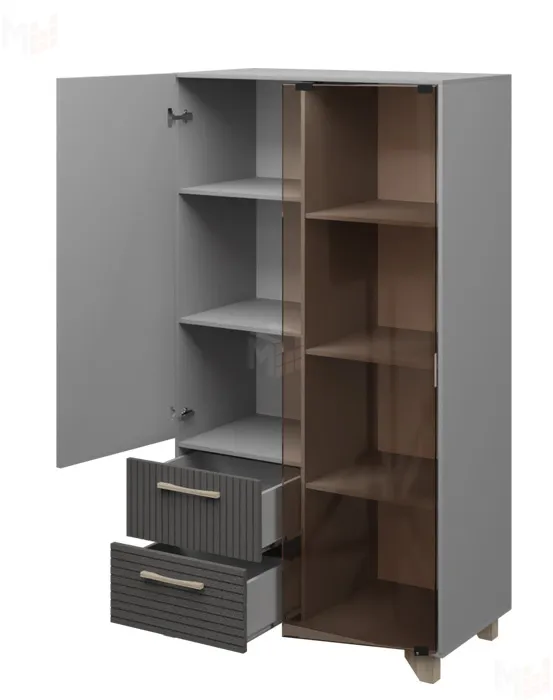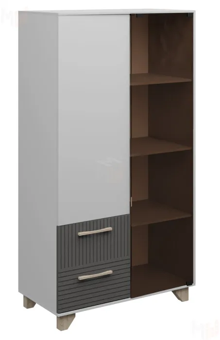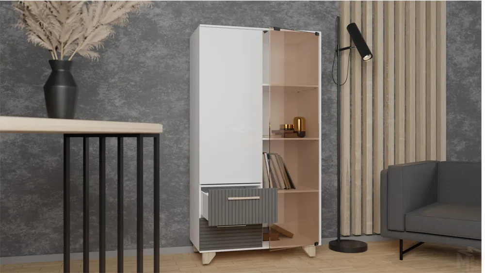 Стеллаж Копенгаген со стеклом (белый матовый/серый графит)