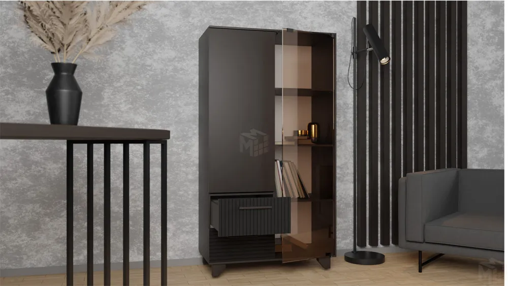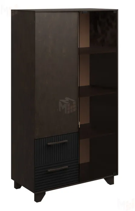Стеллаж Копенгаген со стеклом (венге/черный матовый)