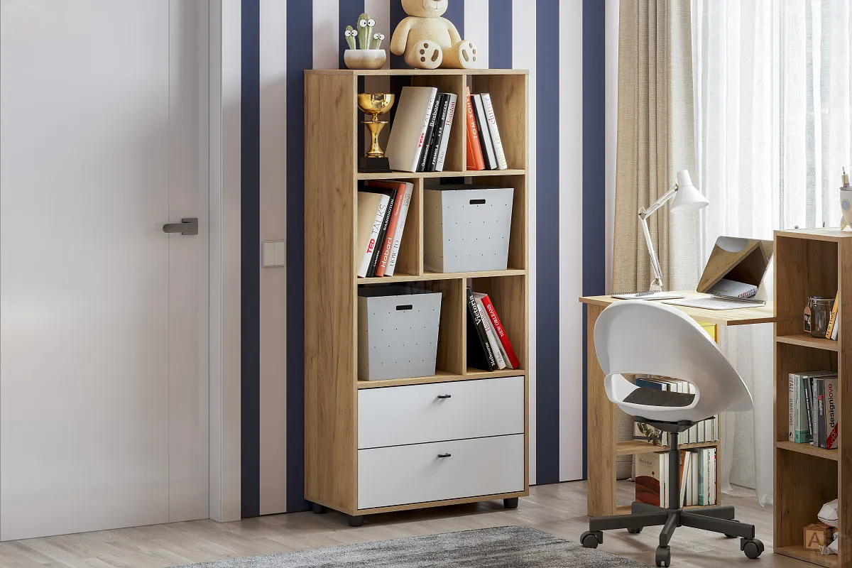Стеллаж Милан Дуб Золотой/Белый Матовый