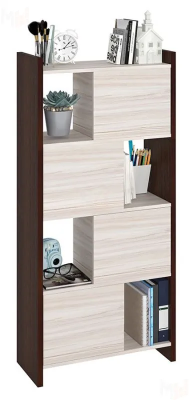 Стеллаж с пятью нишами за распашными дверцами.