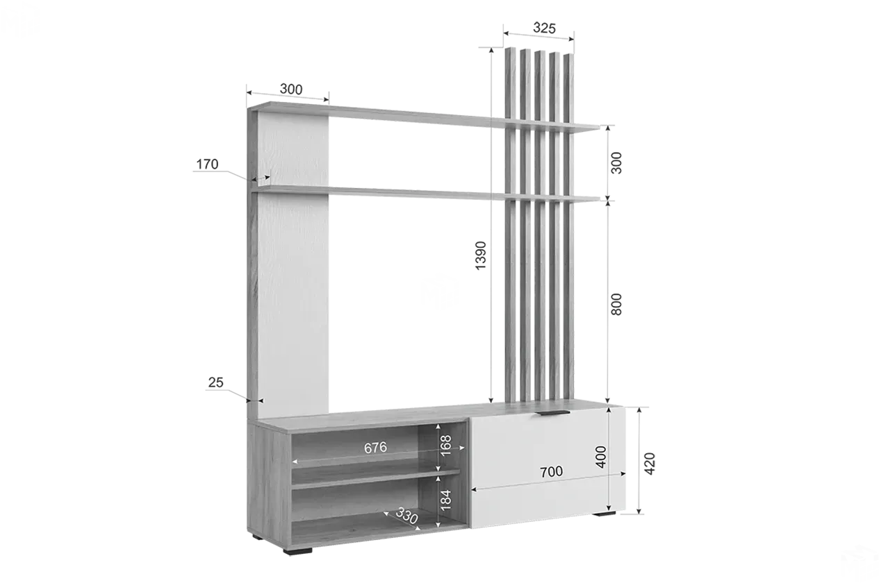 Ширина 1400 мм х Глубина 350 мм х Высота 1810 мм