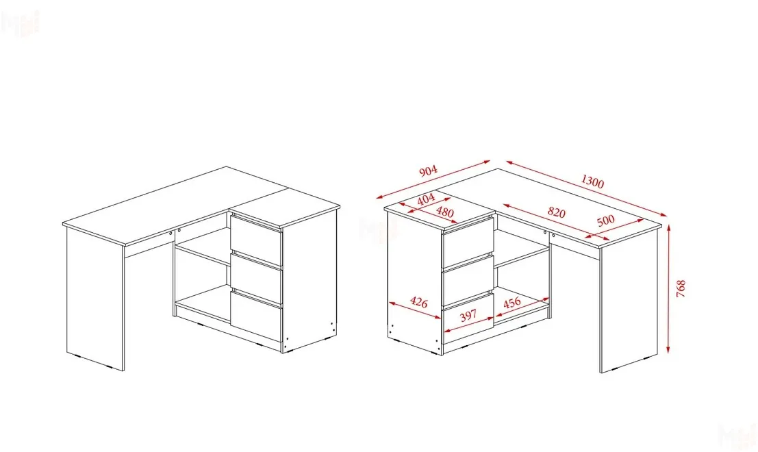 Три вместительных ящика на роликовых направляющих вместят все принадлежности, необходимые для работы и учебы. Сборка как на левую так и на правую стороны.