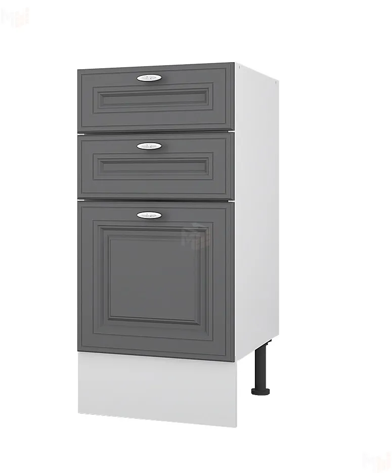 Корпус ЛДСП белый, фасад МДФ Софт. Направляющие роликовые. Регулируемые опоры 150 мм. Цоколь ЛДСП в комплекте.