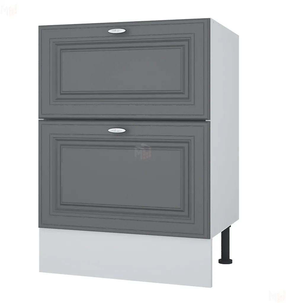 Корпус ЛДСП белый, фасад МДФ Софт. Направляющие роликовые. Опоры ругулируемые высотой 150 см. Цоколь ЛДСП.