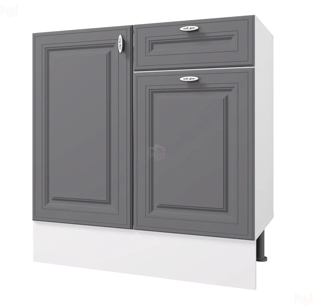 Корпус ЛДСП белый, фасад МДФ Софт. Направляющие роликовые. Регулируемые опоры 150 мм. Цоколь ЛДСП в комплекте.