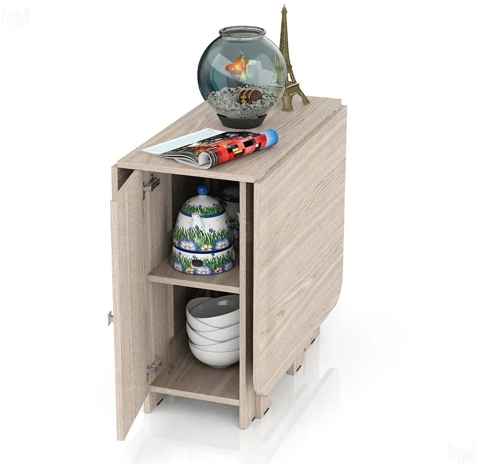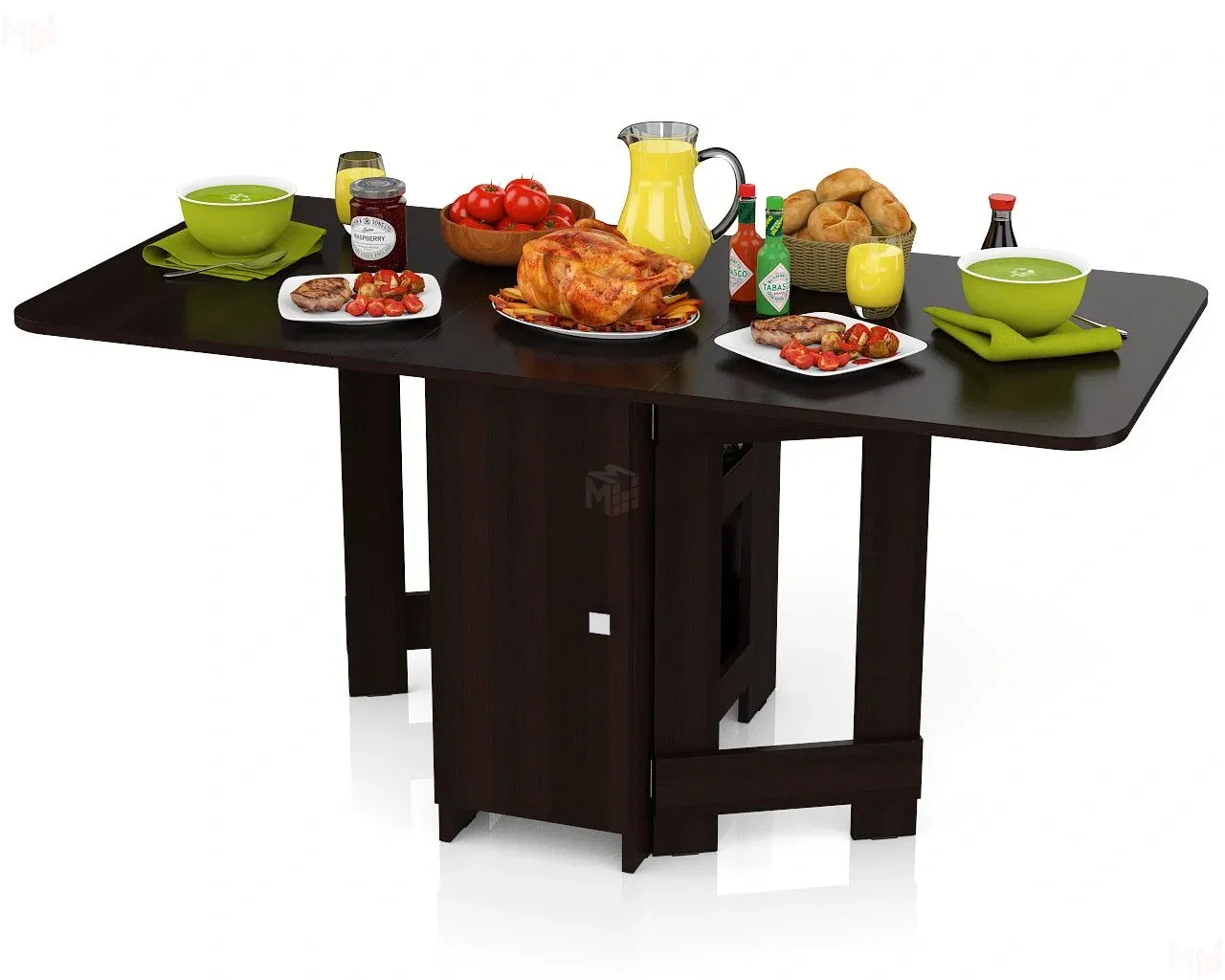 Стол-книжка обеденный с дверью. Цвет на выбор: венге, дуб, ясень шимо светлый. Разложенный вид ШхГхВ 163 х 80 х 75 см, сложенный 42 х 80 х 75 см.