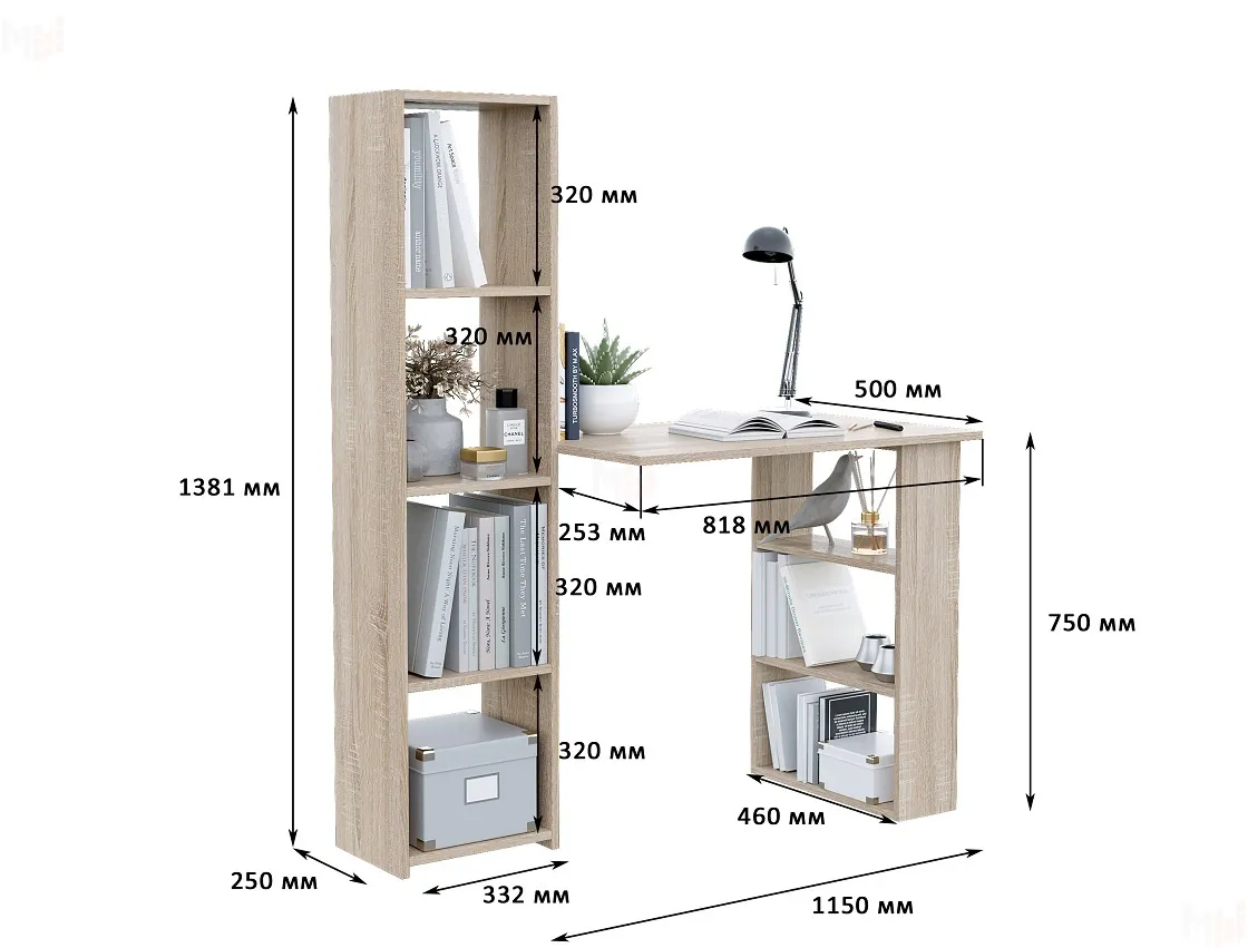 Стол выполнен из ЛДСП цвета дуб сонома толщиной 16 мм.