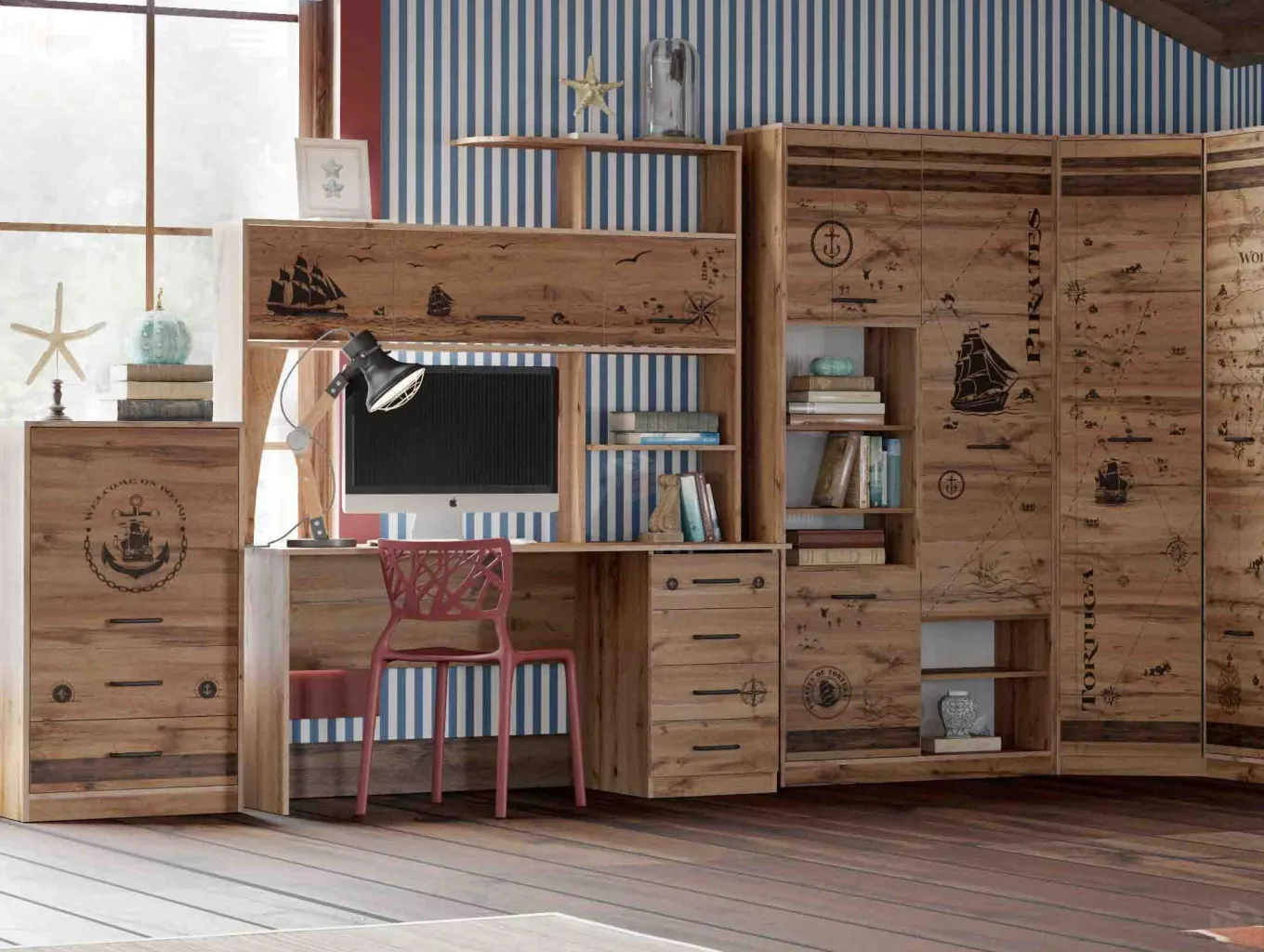 При оформлении детской на первый план выходит рациональное использование полезного пространства, ведь здесь ребенок не только отдыхает, но и играет, делает уроки, занимается творчеством и спортом. Наши дизайнеры при создании коллекций продумывают каждую деталь, опираясь на актуальные тенденции. Стол компьютерный «Фрегат» — один из примеров идеального сочетания практичности, оригинальности и долговечности. Цветовое исполнение подходит сразу для нескольких стилей, а габариты — для комнат разной площади. Мебель для детской создается из безопасных материалов с отличной износостойкостью