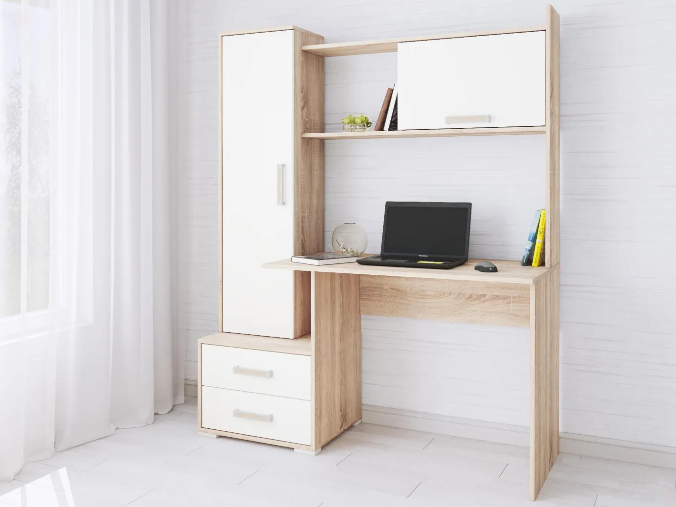 Компьютерный стол Квартет-9 отлично подойдет для комнаты школьника или рабочего кабинета. Стильный стол оснащен надстройкой в виде полок для размещения книг, журналов, часов, а также для необходимой офисной техники. Современный дизайн гармонично впишется в любой интерьер. -