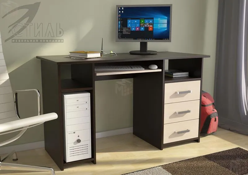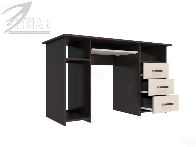 Стол имеет выкатную панель для клавиатуры длиной 350 мм на роликовых направляющих и выкатные ящики на роликовых направляющих длиной 400 мм.
