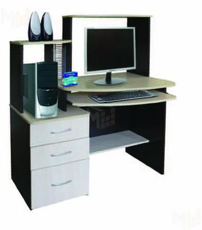 Практичный и удобный компьютерный стол. Надставка позволяет разместить принтер или факс таким образом, что он всегда доступен и не мешает работе. Туда же можно поставить колонки В ящичке с ключом можно хранить документы и ценные вещи. Недорогой и удобный вариант компьютерного стола. Мебель упакована в надёжные картонные коробки, имеется инструкция по сборке на русском языке и вся фурнитура.