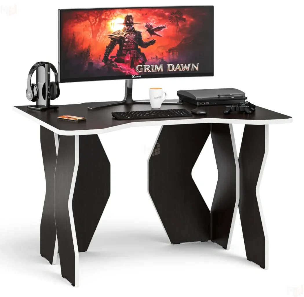 Стол для геймера Краб-6 с большой столешницей. Цвет венге. Кромка белая.