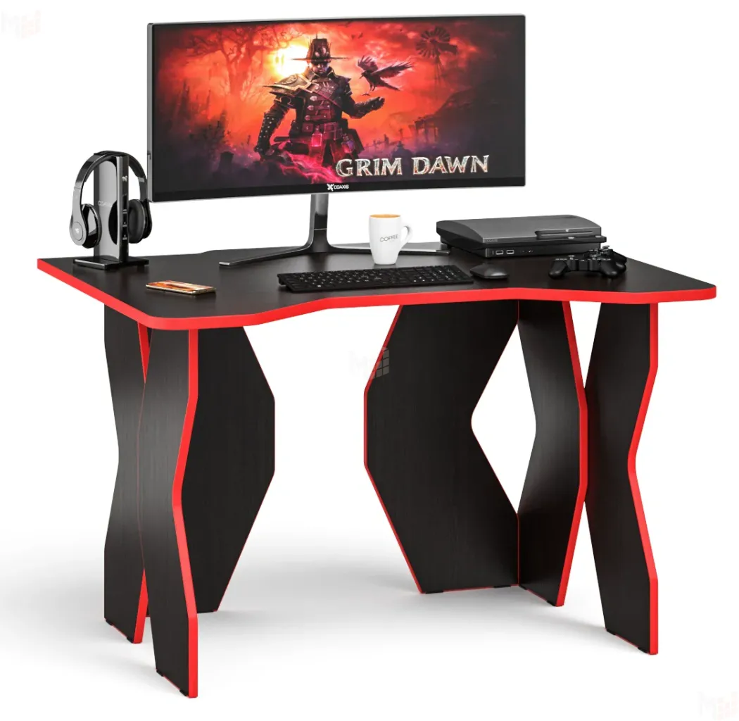 Стол для геймера Краб-6 с большой столешницей. Цвет венге. Кромка красная.