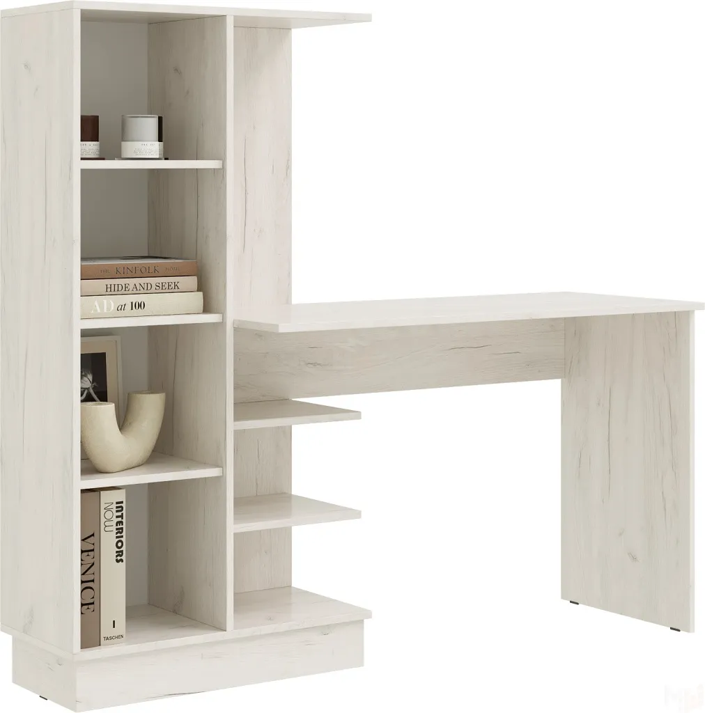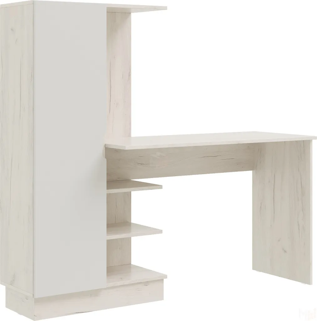Корпус стола выполнен из ЛДСП Крафт белый. Фасад пенала выполнен из МДФ Шарли белый.