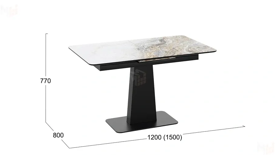 Стол обеденный Бридж Черный муар, Стекло глянцевое оникс