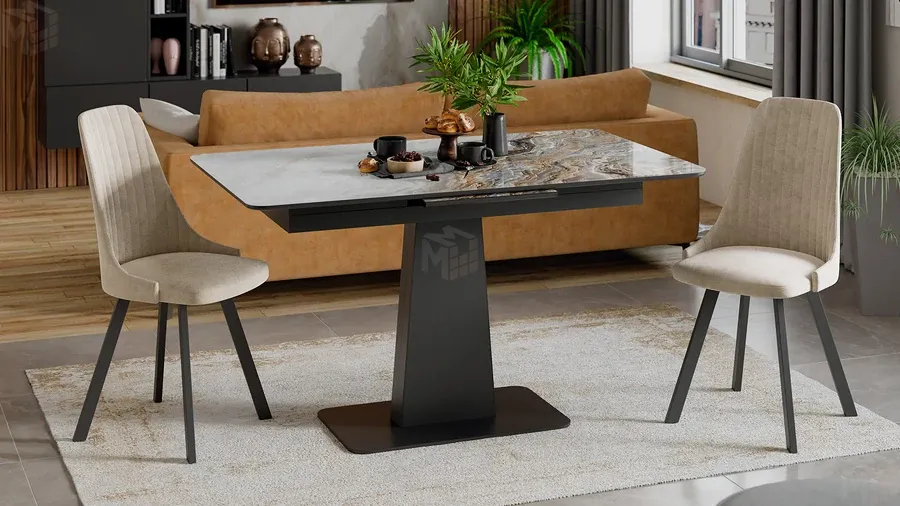 Механизм трансформации Синхронный раздвижной со вставкой «BAUT»МатериалыМатериал вставки столешницы МДФ, Стекло