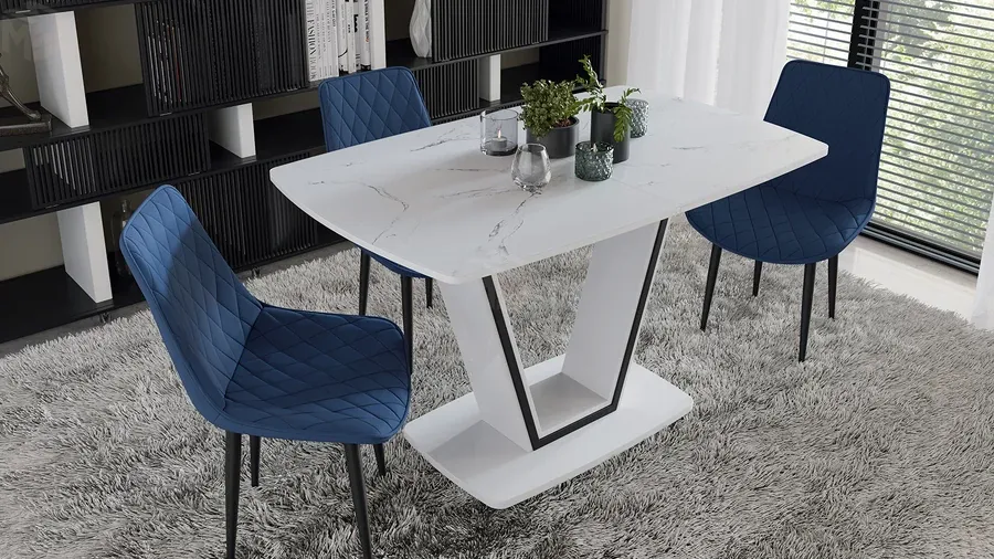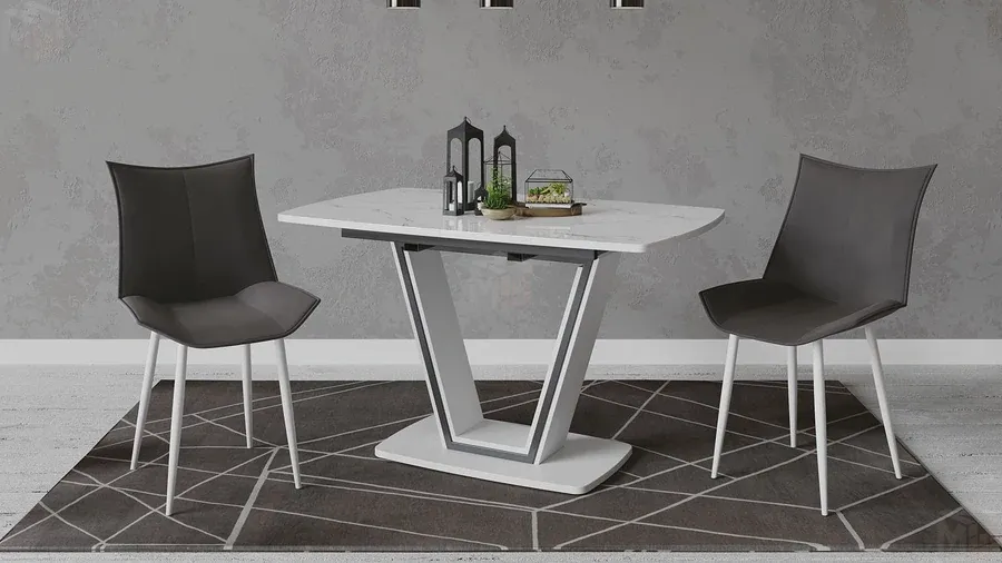 Стол обеденный Дели Тип 1 Белый глянец, Стекло матовое белый мрамор