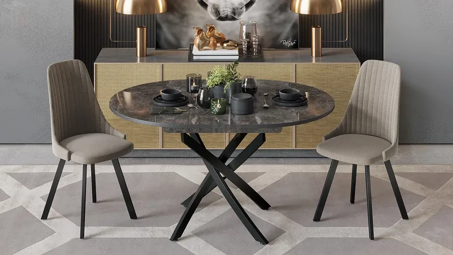 Стол обеденный Diamond Тип 3 - КМ+02.68.000.168 Черный муар, Ателье темный глянец