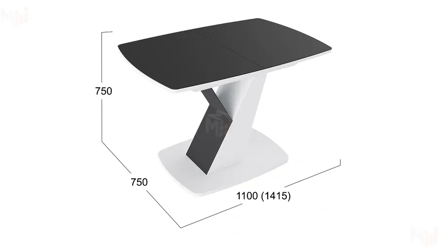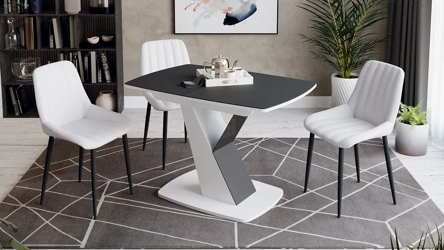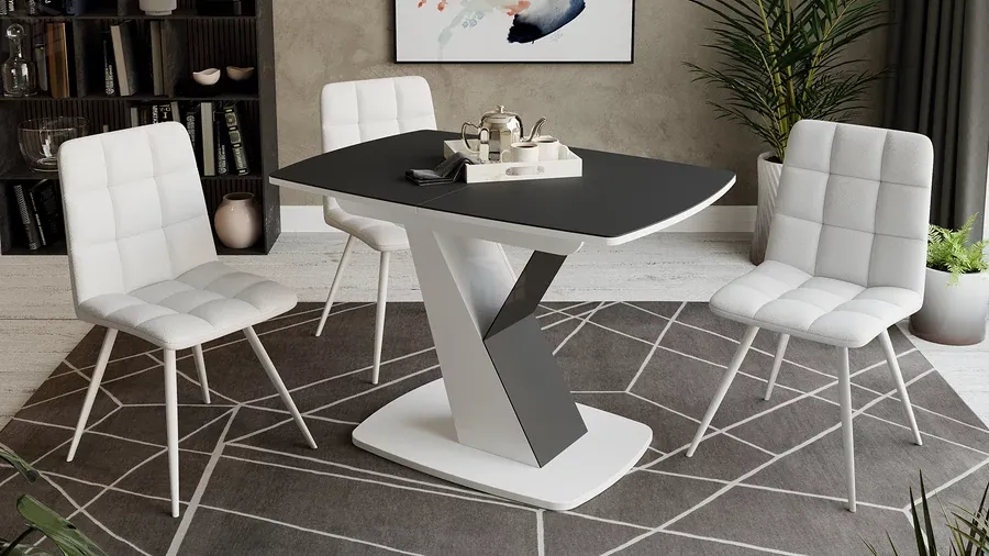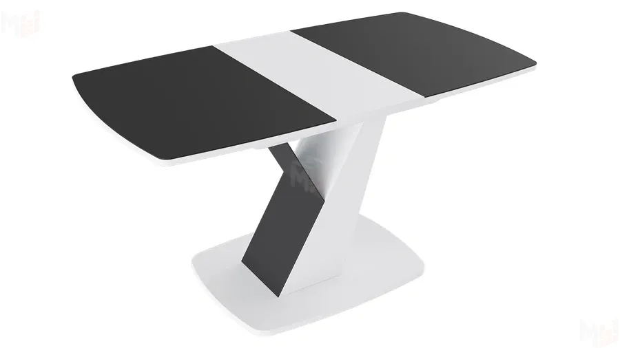 Стол обеденный раздвижной Стокгольм Тип 1 Черный муар, Стекло глянцевое белое