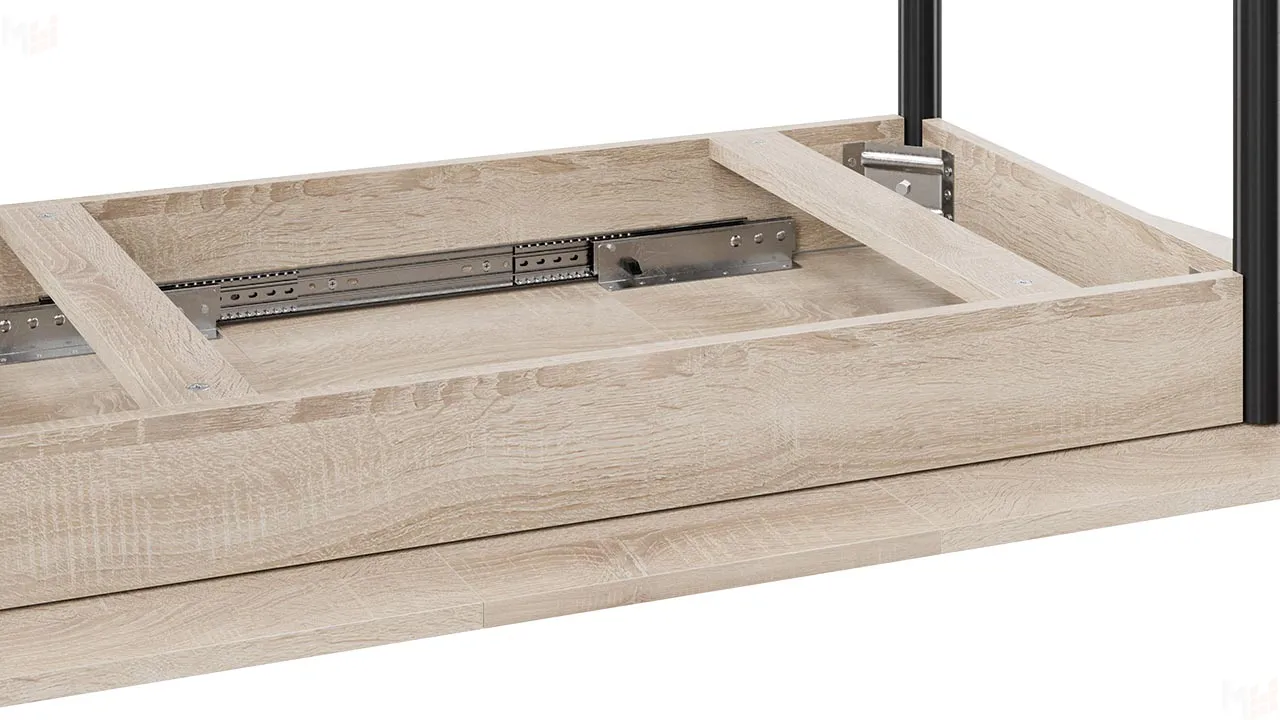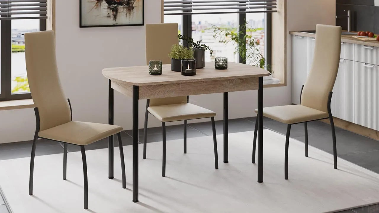 Столешница и вставка изготовлены из ЛДСП 16 мм с обработкой торцов кромкой ПВХ 0,4 мм. Ножки выполнены из металла и окрашены в цвета «Белый» и «Черный».